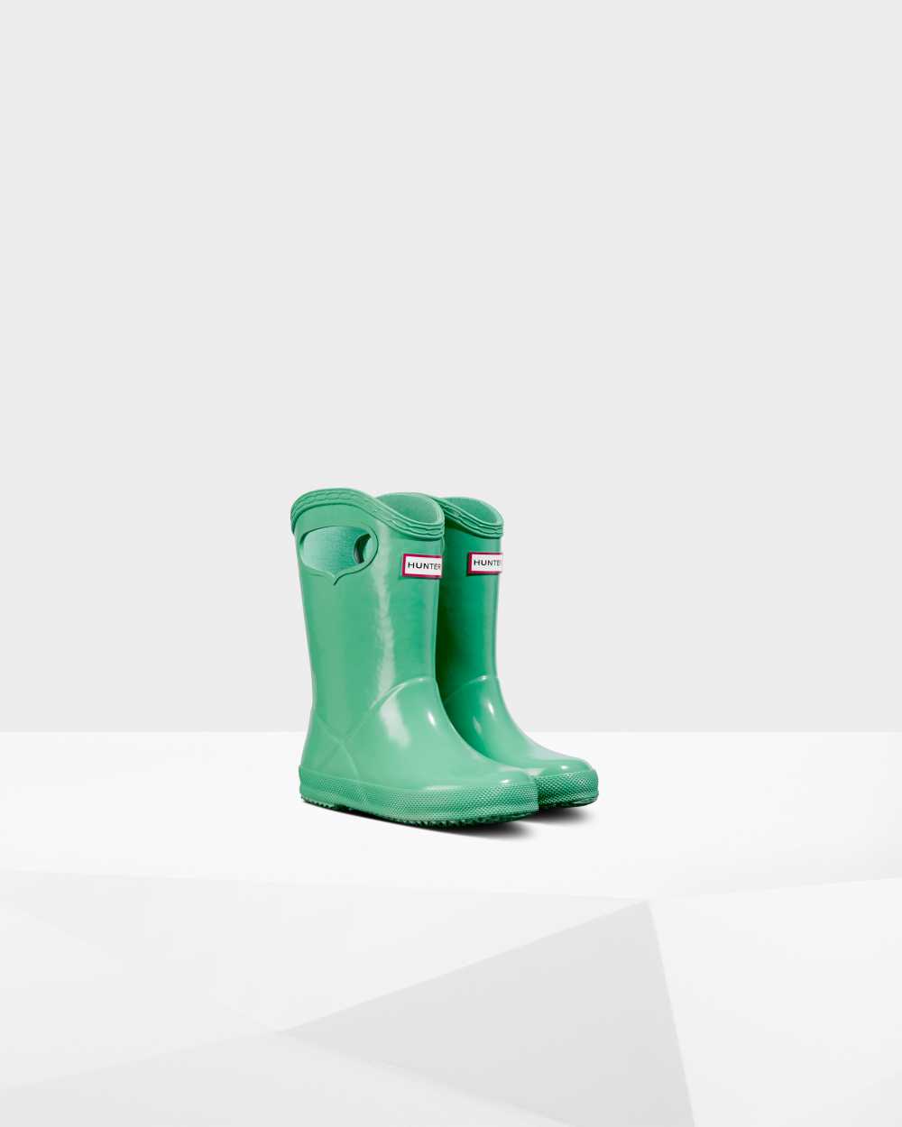 Featuring an easy pull on style with cute carry handles perfectly sized for little fingers, the new Kids First Grab Handle Rain Boot gives your little explorers complete independence. Finished in a wipe clean mint gloss, this playful and waterproof boot is perfect for puddle splashing. A flat sole and rounded toe gives little feet room to move and the soft cotton lining ensures complete comfort for every adventure.