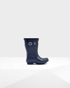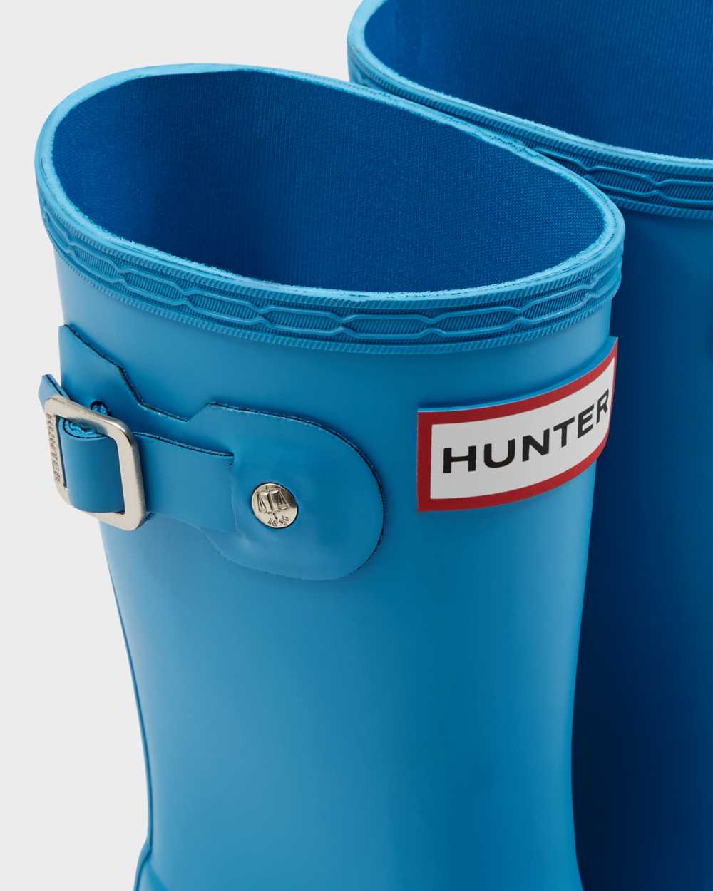 A mini version of the iconic Original Tall Boot, the Original Little Kids Rain Boot is a dream for tiny feet. This vibrant blue boot is handcrafted from natural rubber. Designed for adventures, our specialised kids boots are highly resistant to wear and abrasion with a polyester lining for comfort. Reflective patches and the Hunter Original tread offer added safety so you can be confident letting them take on the elements whatever the weather.