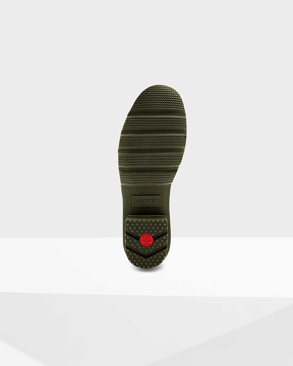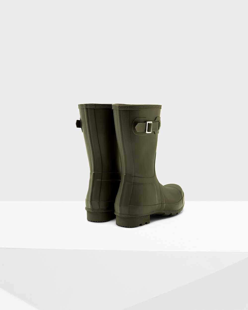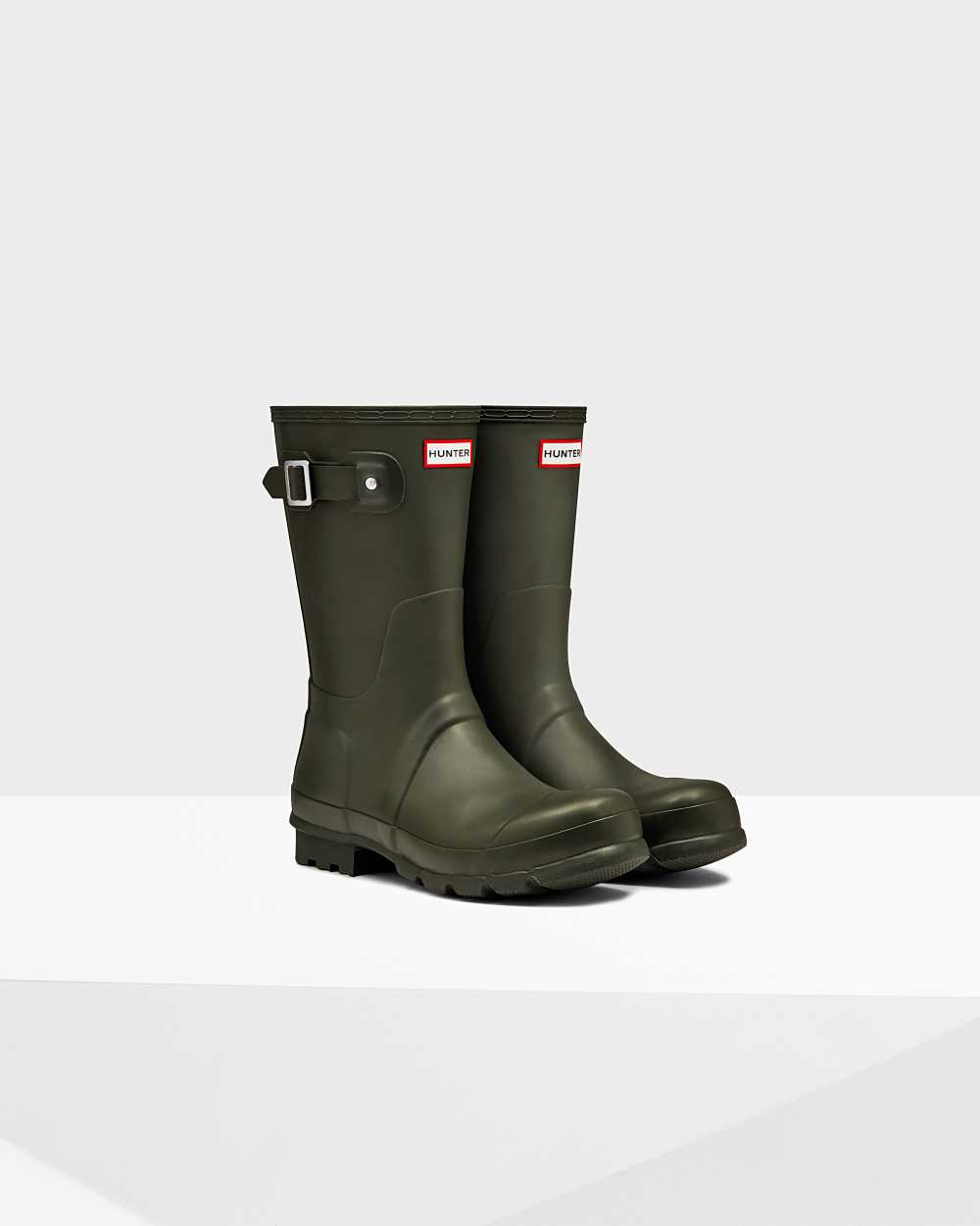 The Men's Original Short Rain Boot Boot takes the iconic design of the Tall Boot and scales it down for a versatile and comfortable style. From jeans to chino's, styling is easy thanks to the mid-calf height. Formed of natural rubber, each boot is handcrafted and assembled over three days before being vulcanized for superior protection. Featuring the Hunter Original tread pattern, and a comfortable polyester lining, this classic olive waterproof boot is an everyday essential.