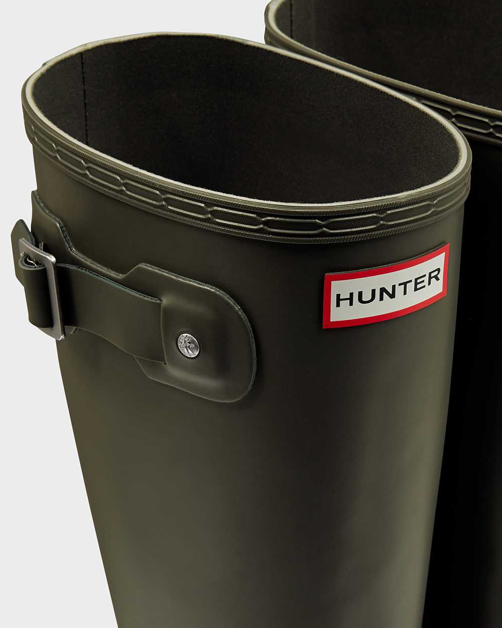 Designed to shield and protect from the elements, the Original Tall Rain Boot Boot has been at the heart of the Hunter Original brand since its introduction in 1956. Formed of natural rubber, each pair is made from 28 hand-cut parts and assembled over three days on an aluminium last bespoke to Hunter, before being vulcanized for superior protection. Featuring the Hunter Original tread pattern, and a comfortable polyester lining, this men's waterproof boot with a dark green matte finish is a wet weather necessity.