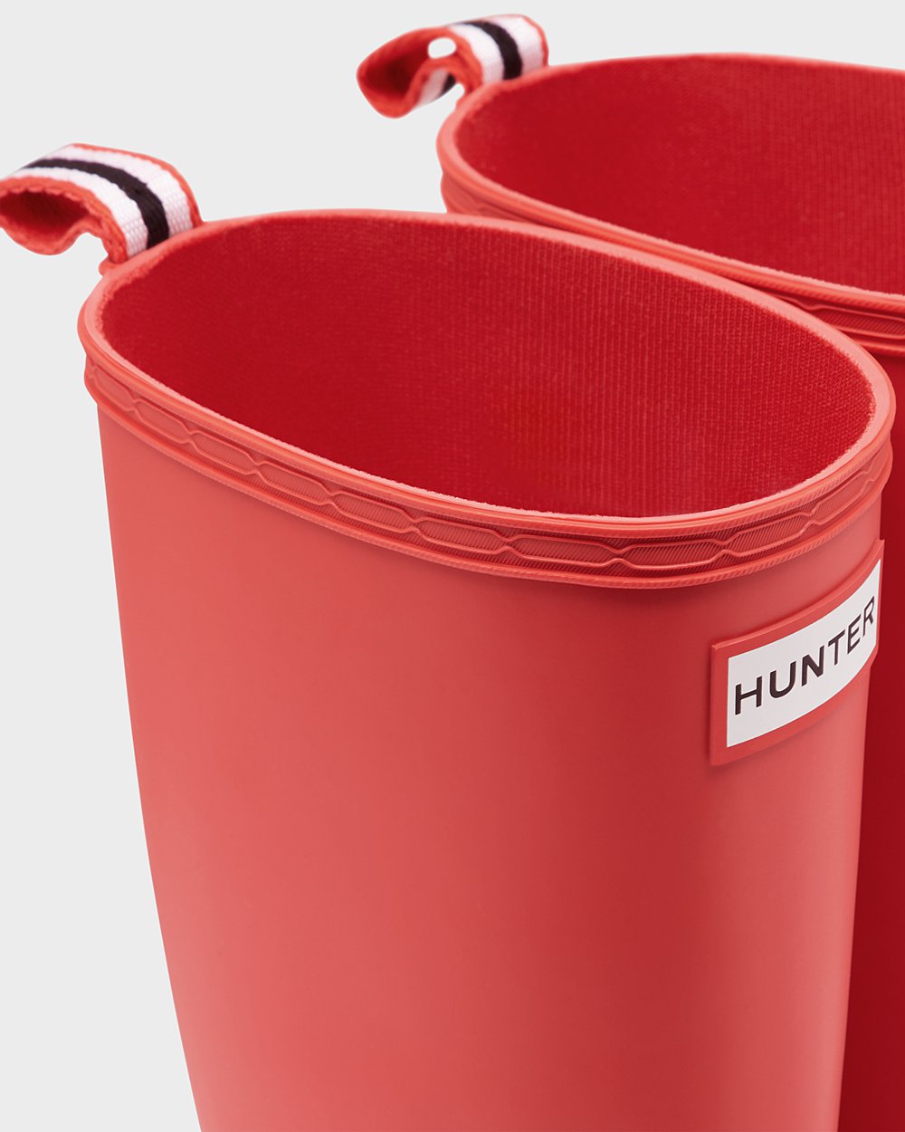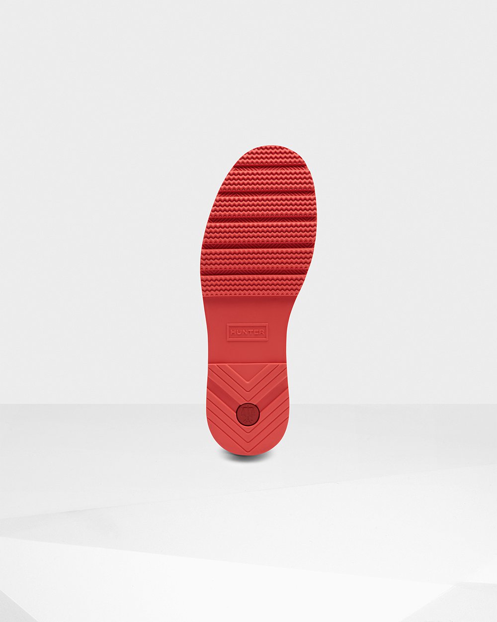 Simplifying the iconic design of the Original Tall Boot, the Play Boot offers a dynamic silhouette with a flatter platform sole for maximum comfort and versatility. Crafted from the highest quality natural rubber this women's wellington is 100% waterproof. At a stylish mid-calf height, this classic Hunter red boot complements street style, festival flair and everything in between, so you can play it your way.