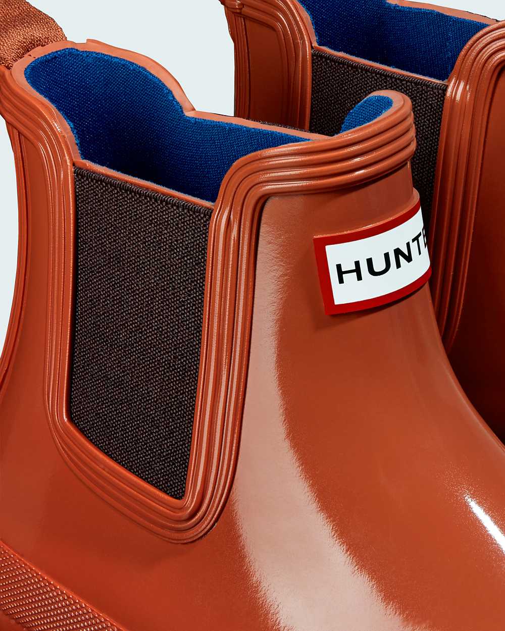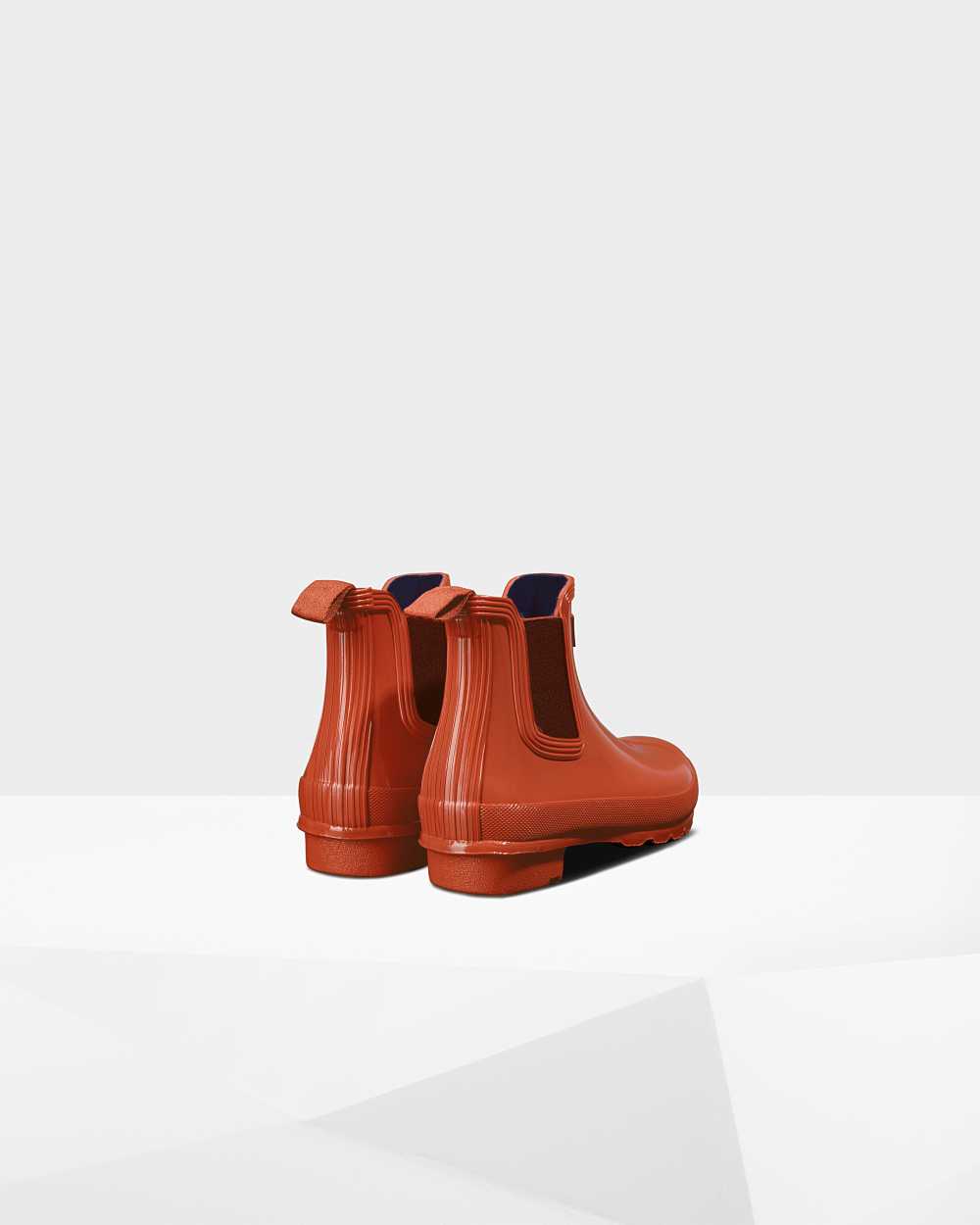 The Hunter Original Gloss Chelsea Boot is a rework of the classic ankle boot. Ready for rain, each boot is handcrafted from natural rubber and vulcanized for superior protection. Retaining the iconic features of the traditional Chelsea, elasticated gussets and a nylon pull tab make for easy wear. Finished in a seasonal orange gloss, these waterproof chelsea's are a wet weather wardrobe essential.