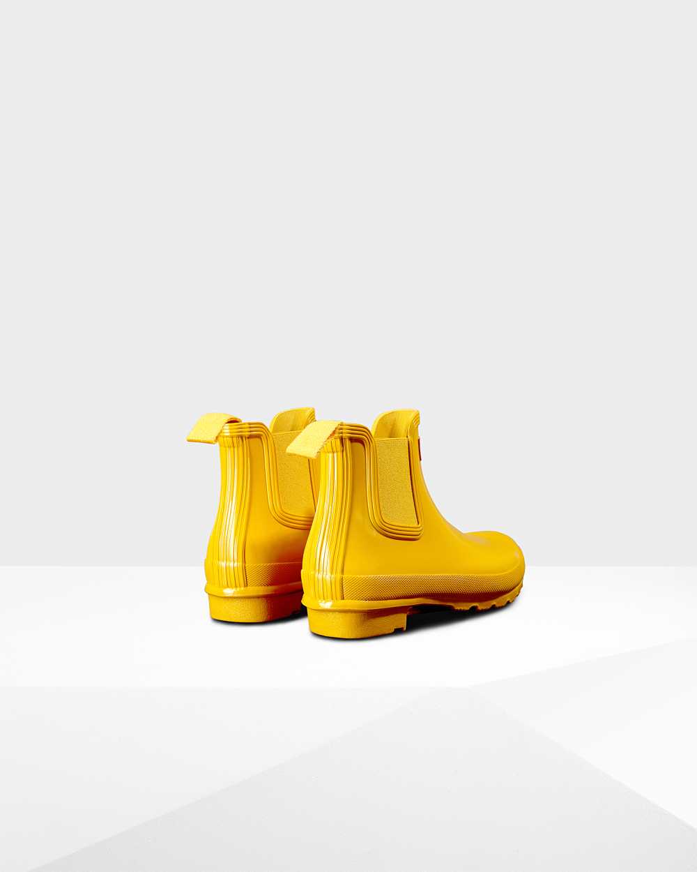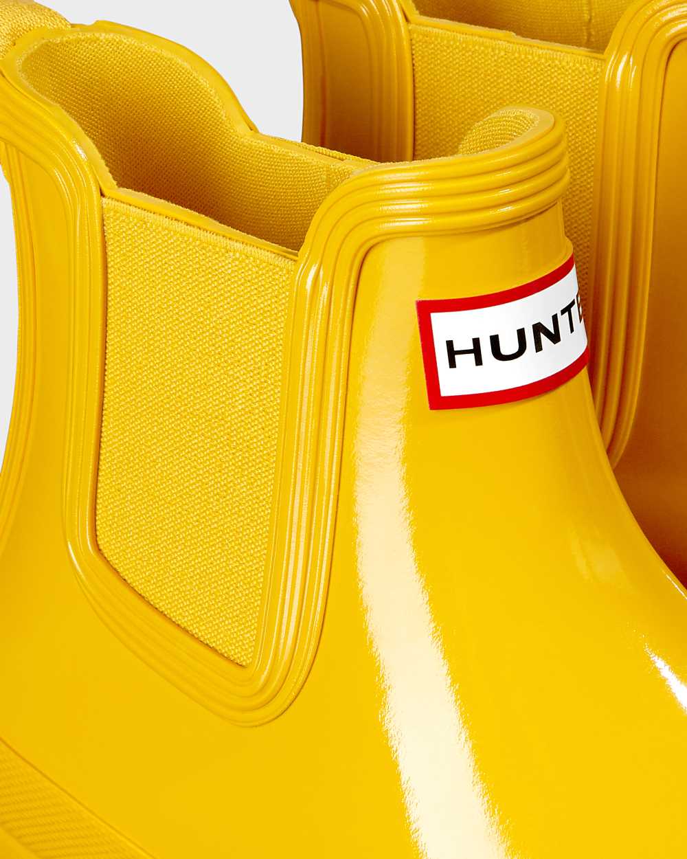 The new and improved Hunter Original Chelsea Boot has an even more optimum fit to maximise all-day comfort. Ready for rain, each boot is handcrafted from natural rubber and vulcanized for superior protection. Retaining the iconic features of a traditional Chelsea, it features elasticated-gussets and has a nylon pull-tab to make stepping into the boot easy. In a classic yellow gloss, these waterproof Chelsea's are a wet weather wardrobe essential.