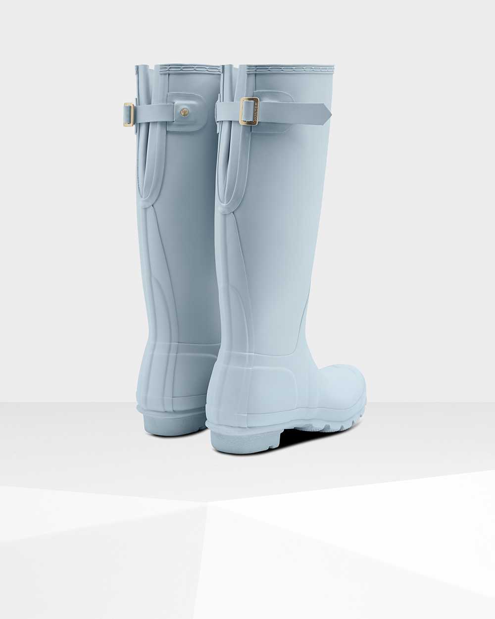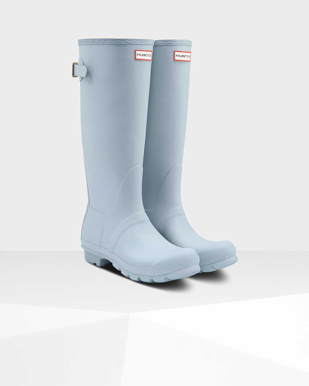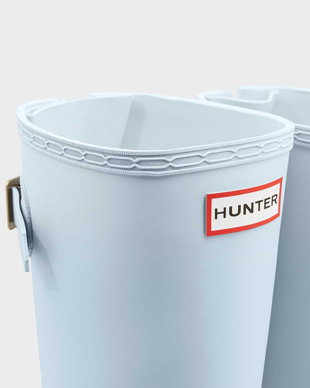 Designed for a flexible fit, the Original Tall Adjustable Boot mirrors the iconic Original Tall with the addition of an expandable gusset at the back. Perfect for a wider calf, these matte boots in a light bluish grey offer ease of movement and adjust from the traditional tailored Hunter fit to a more relaxed shape when the gusset is fully extended. Handcrafted from natural rubber, the Original Adjustable boot is fully waterproof with a comfortable polyester lining and the signature Hunter Original tread.