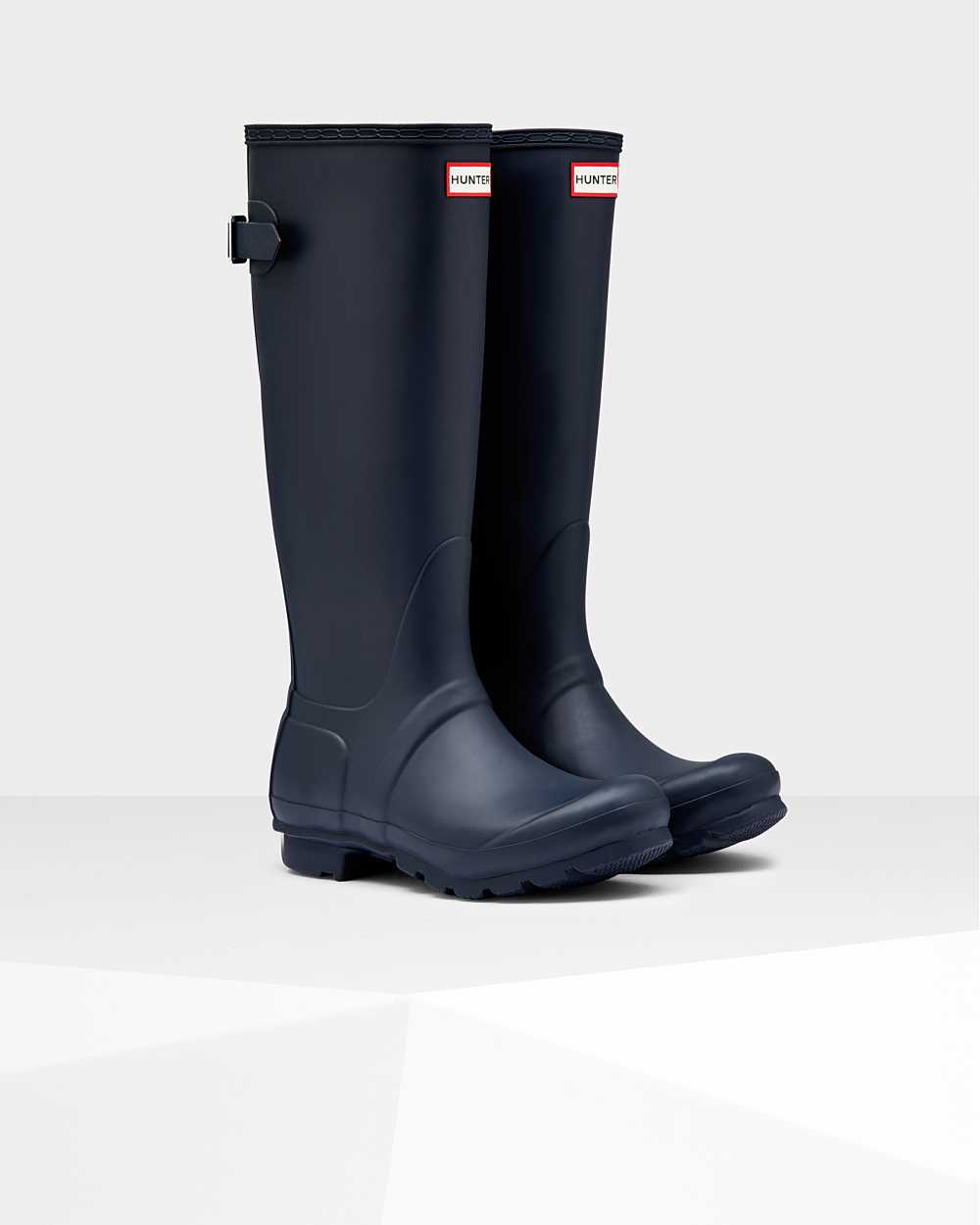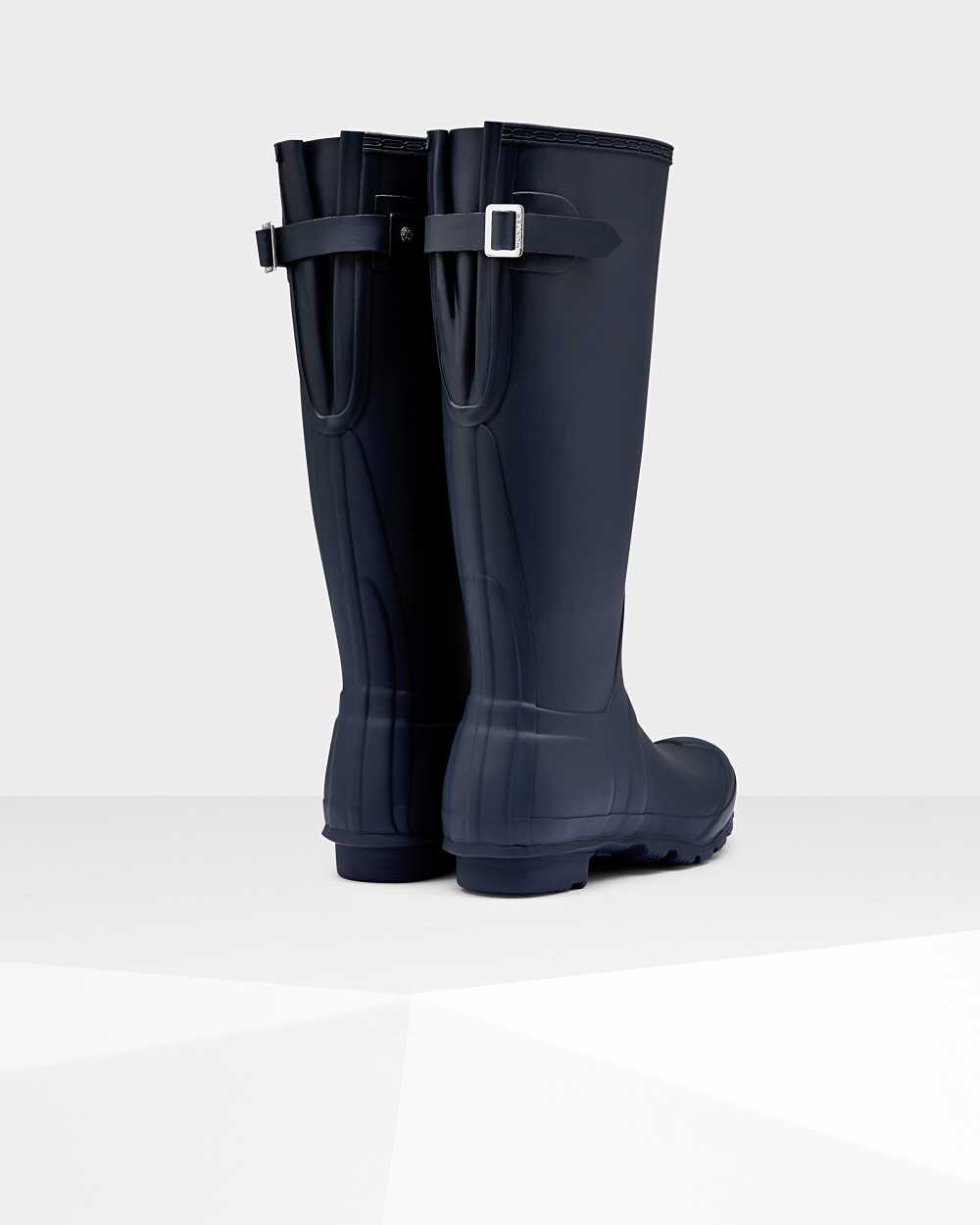 Designed for a flexible fit, the Original Tall Adjustable Boot mirrors the iconic Original Tall with the addition of an expandable gusset at the back. Perfect for a wider calf, these matte boots in classic navy offer ease of movement and adjust from the traditional tailored Hunter fit to a more relaxed shape when the gusset is fully extended. Handcrafted from natural rubber, the Original Adjustable boot is fully waterproof with a comfortable polyester lining and the signature Hunter Original tread.