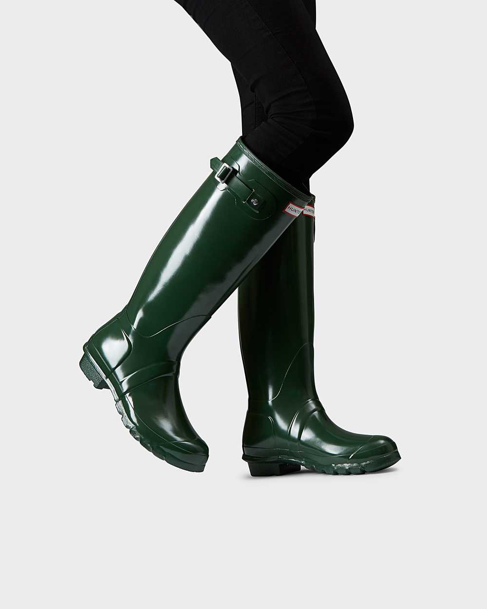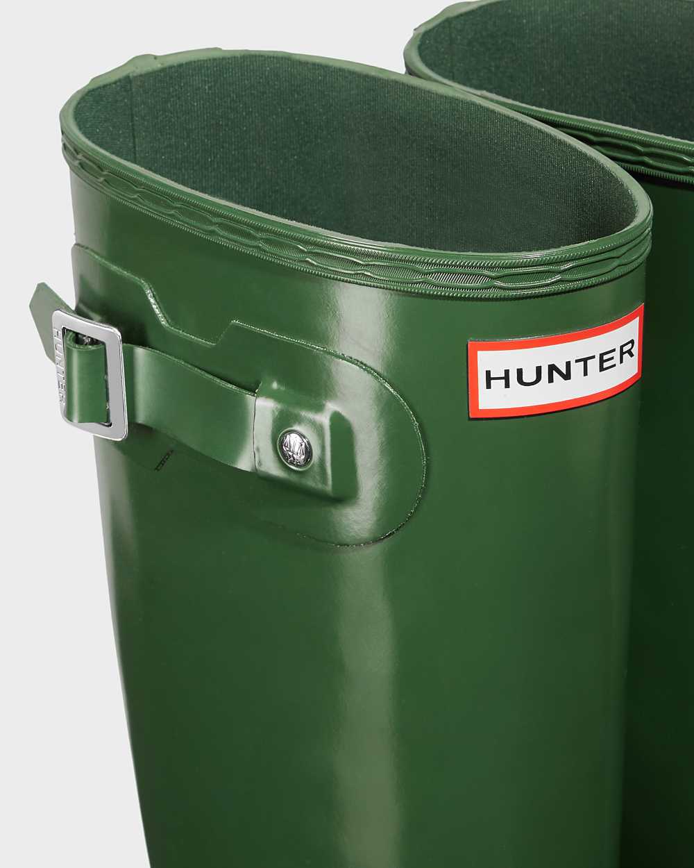 Perfect for wet weather conditions, this women's Rain Boot Boot has been at the heart of the Hunter Original brand since its introduction in 1956. Formed of natural rubber, each pair is made from 28 hand-cut parts and assembled over three days on an aluminium last bespoke to Hunter, before being vulcanized for superior protection. Featuring the Hunter Original tread pattern, and a comfortable polyester lining, this classic glossy green waterproof boot is a rainy-day necessity.