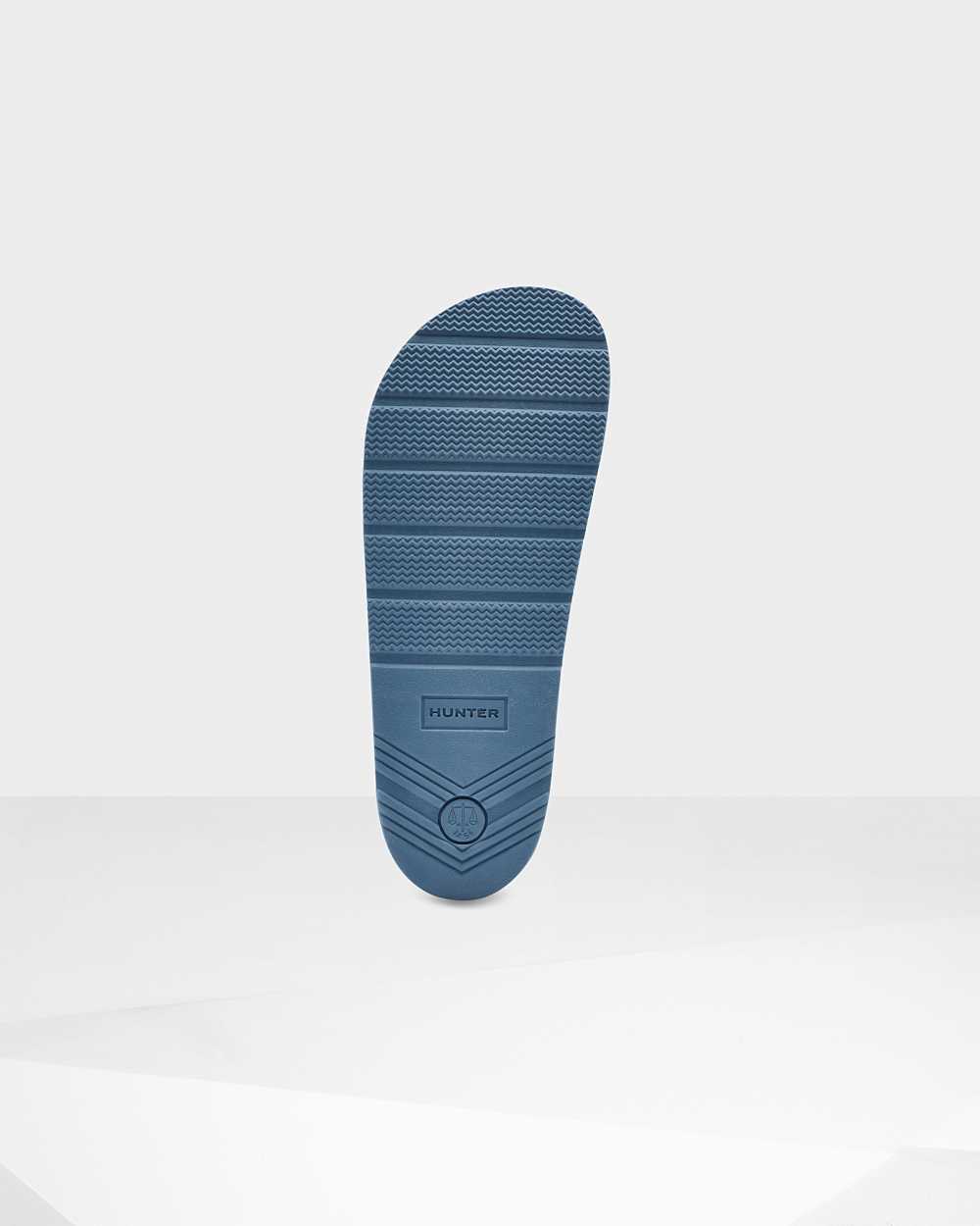 The lightweight, Original Adjustable slides combine the softness or a beach towel with the comfort of a moulded footbed. Crafted from moisture-absorbing terry towelling, which eliminates irritation with every step, these blue womens slides are fastened with a velcro strap stamped with the Hunter box logo for a customisable fit. Easy to clean and quick to dry, they are breathable, flexible and designed for long hot days by the pool.