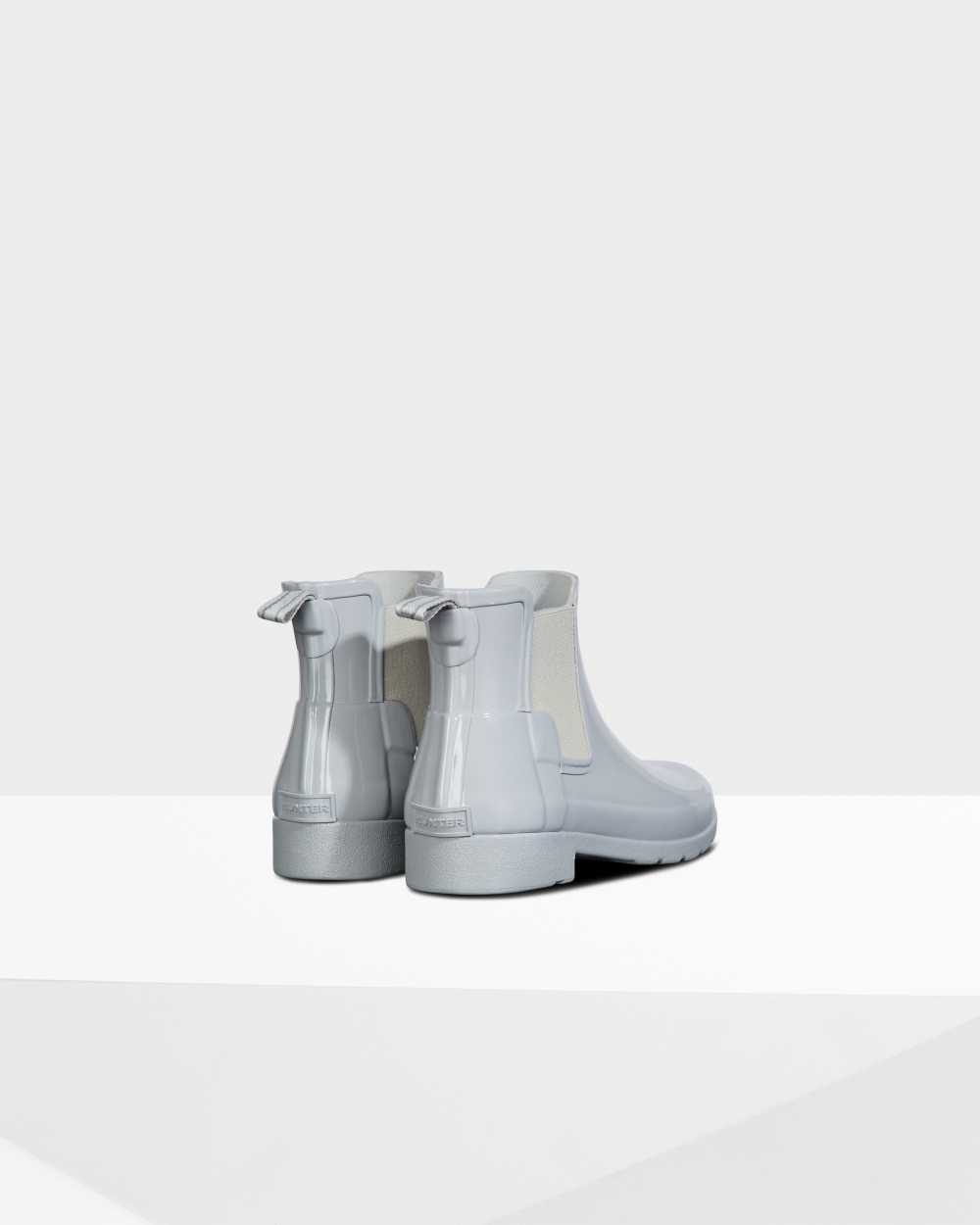 With a slimmer fit ideal for city-living, the Women's Refined Chelsea features a tailored shape and molded footbed for everyday wear. A rework of the classic ankle boot, each boot is ready for rain and handcrafted from natural rubber which has been vulcanized for superior protection. Retaining the iconic features of the traditional Chelsea, elasticated gussets and a nylon pull tab make for easy wear. Perfect for everything from city commuting to last minute lunches, this waterproof boot in a sleek grey gloss finish is a wet weather essential.