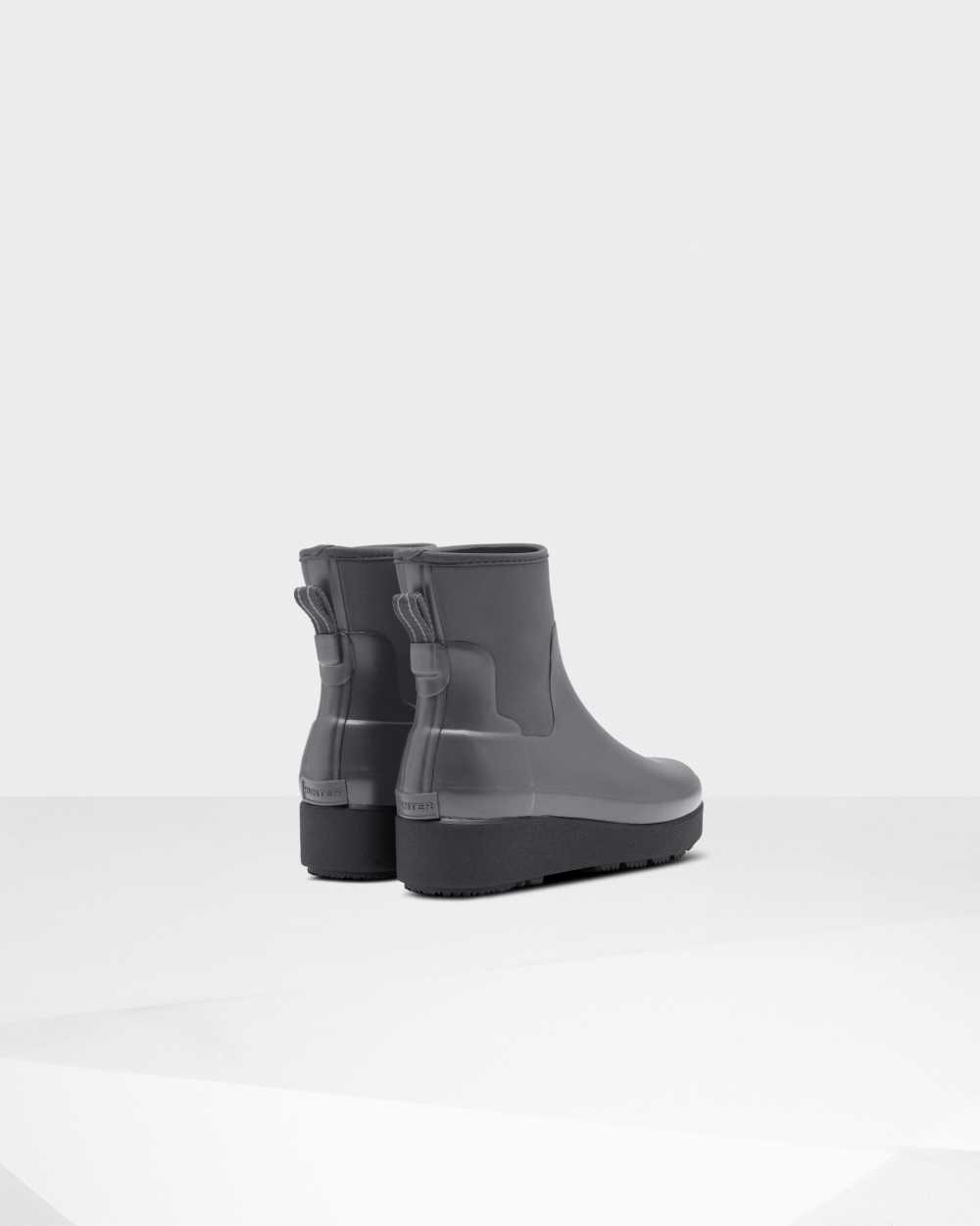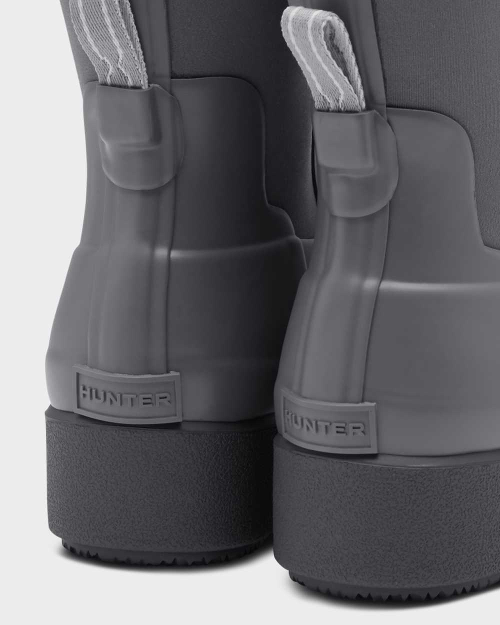 Handcrafted from a super versatile neoprene and natural rubber, the new Women’s Refined Creeper Chelsea Boot hugs your leg right above the ankle for an elegant slim fit. The latest addition to the Hunter family, this waterproof boot offers practicality and effortless style. With a modern lightweight creeper outsole and neoprene accents, this everyday wearable boot retains the iconic features of the traditional Chelsea with subtle sport-luxe advancements. A pull-on style perfect for city walks, the neoprene adds comfort and insulation for those colder days in the year. Ideal for everything from city commuting to last minute lunches, this waterproof boot in a sleek grey with a contrast sole is a wet weather essential.