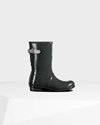 Hunter Women's Original Short Back Adjustable Gloss Short Wellington Boots Black,BXCG75416